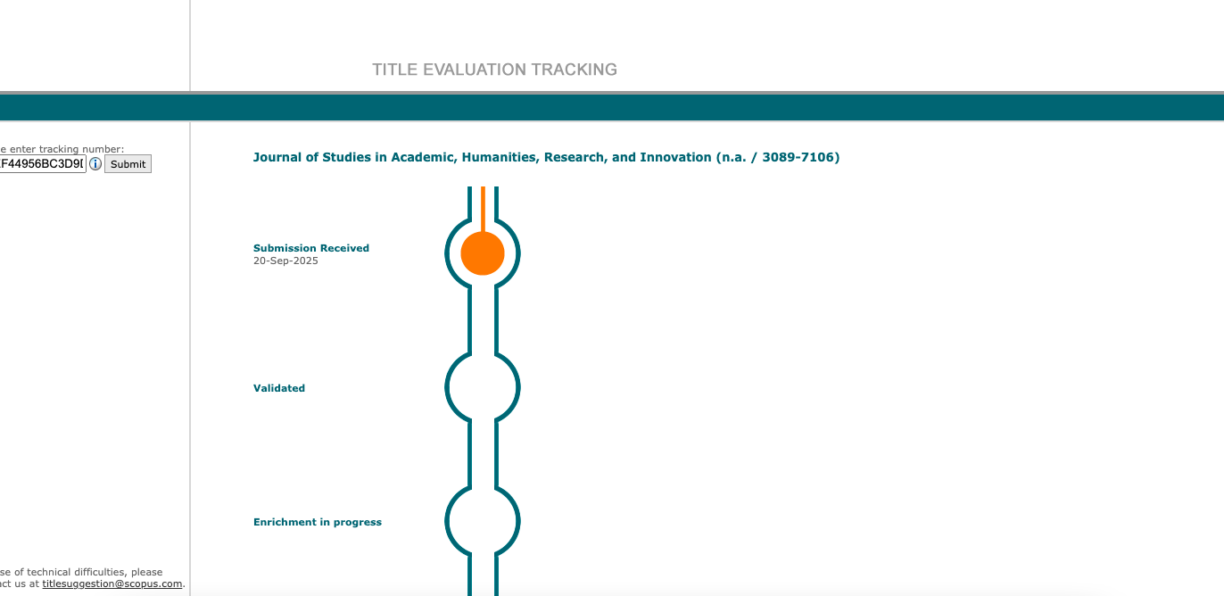 Scopus Submission Tracking – Journal of Studies in Academic, Humanities, Research, and Innovation